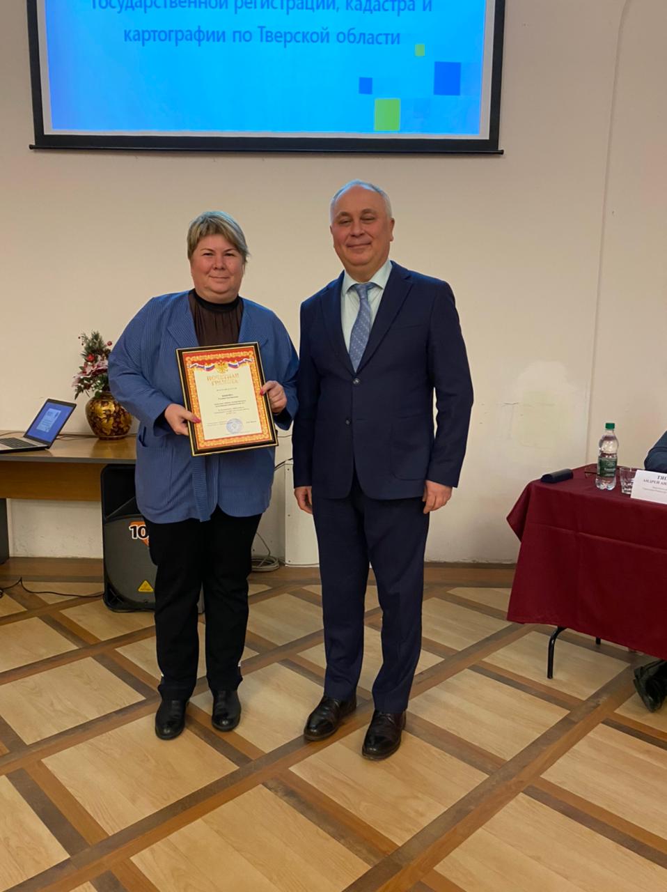 Конечно же, проведение тожественного мероприятия не могло обойтись без вручения наград, которые были вручены не только специалистам тверского Росреестра и регионального филиала ППК «Роскадастр», достигшим высоких результатов в работе, но и ветеранам ведомства.
