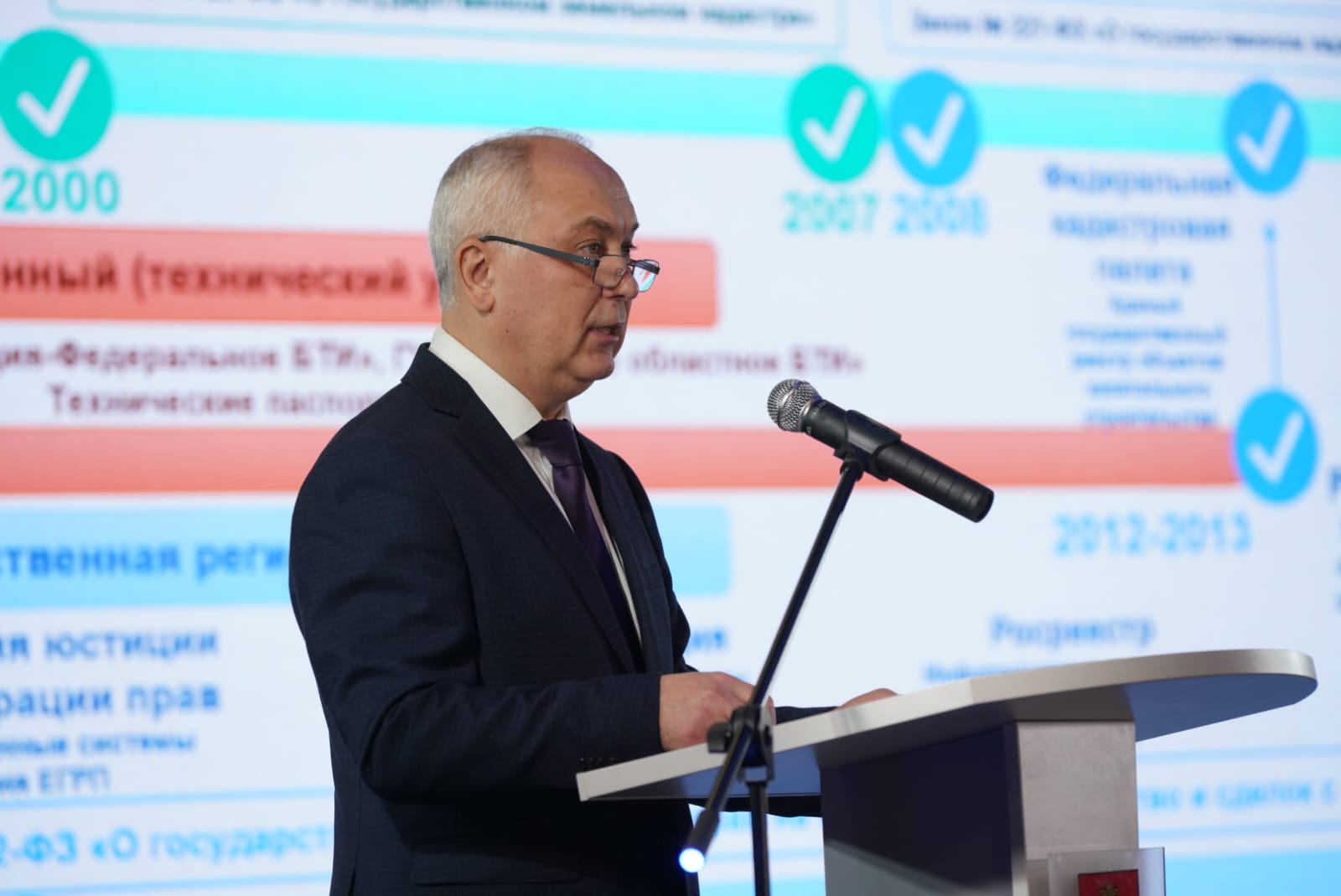 В начале торжественного мероприятия гостям продемонстрировали фильм, посвященный созданию и развитию учетно-регистрационной системы в Тверской области. Далее с приветственным словом выступил руководитель Управления Росреестра по Тверской области Николай Фролов.